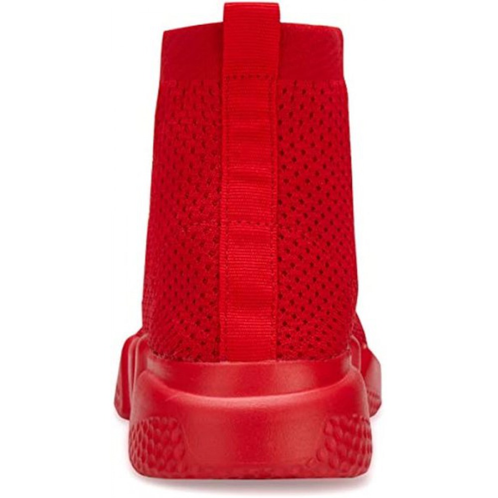 Men's Running Shoes Breathable Knit Slip On Sneakers Lightweight Athletic Shoes Casual Sports Shoes High Top All Red